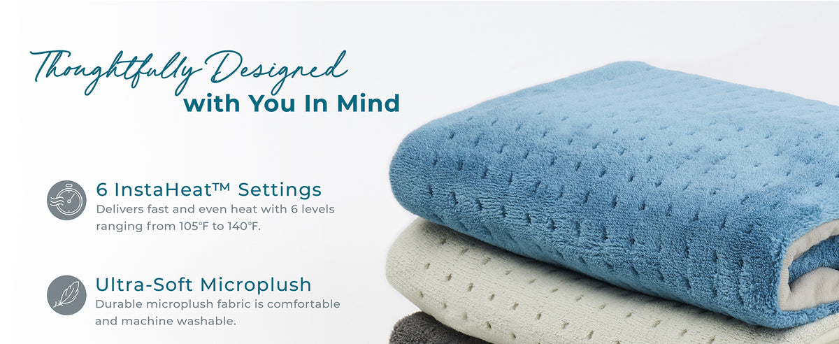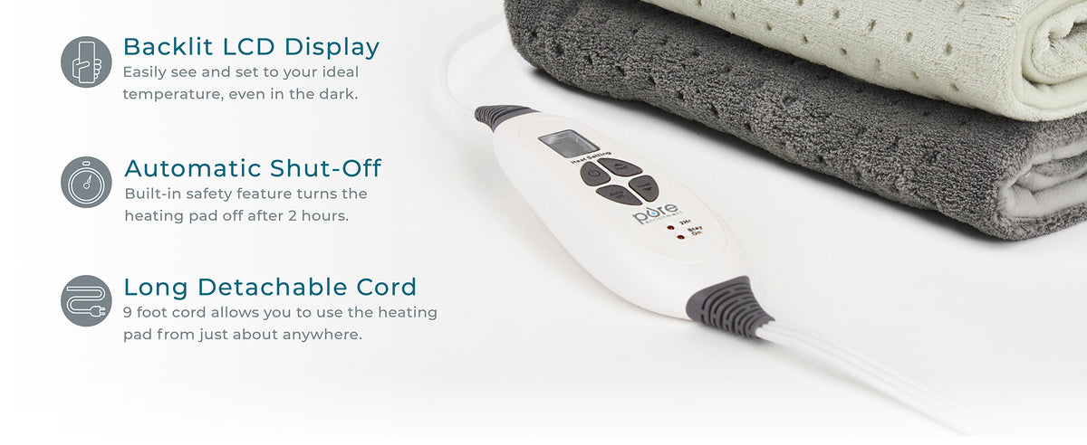 - SOFT FABRIC & EXTRA-LONG CORD: Gentle, machine-washable microplush fabric feels soft and comforting on bare skin and offers maximum comfort for daily use. The 9-foot cord allows you to adjust positions and pad placement with ease while relaxing on your bed, couch, or office chair.
