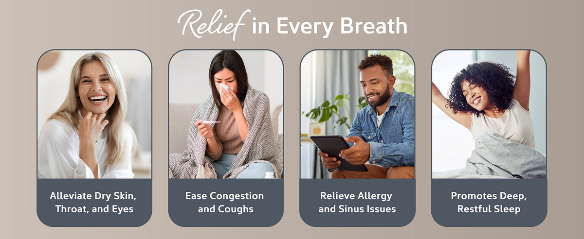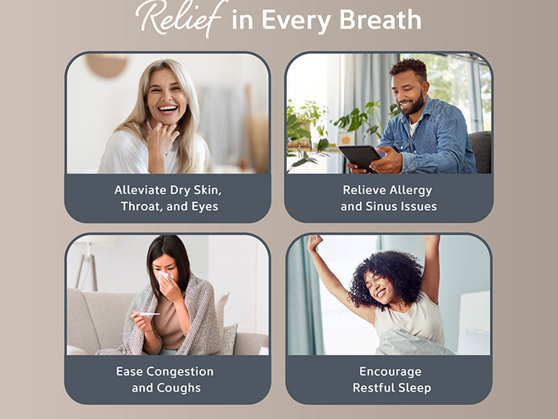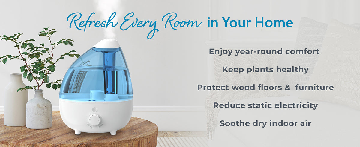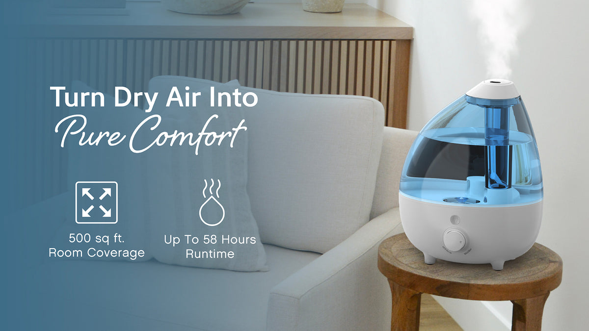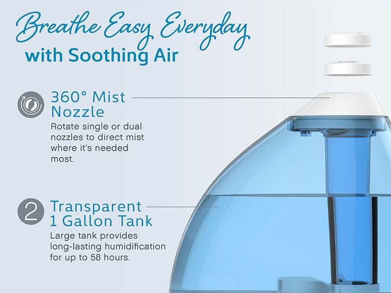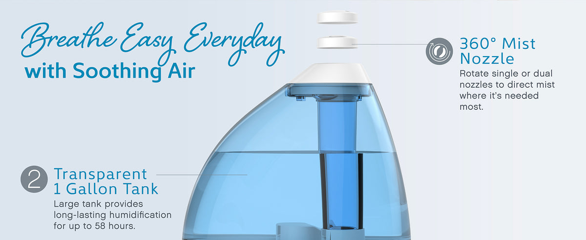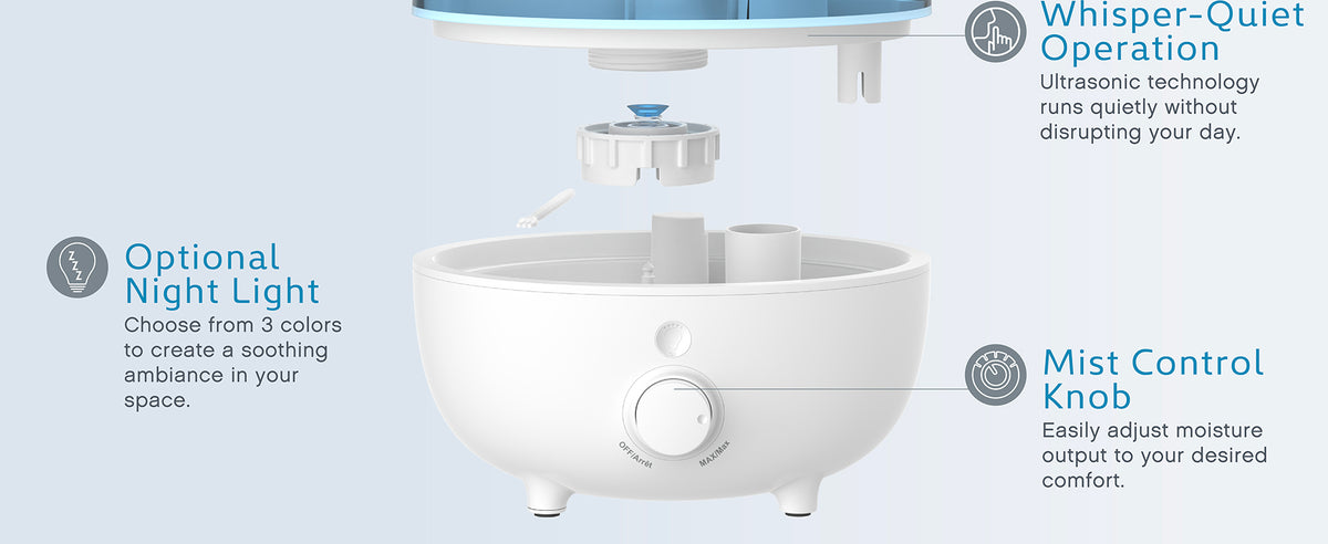 - Variable Mist Control Knob: Adjusts moisture output to meet your comfort level
