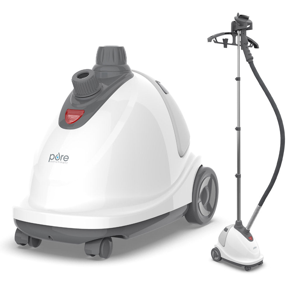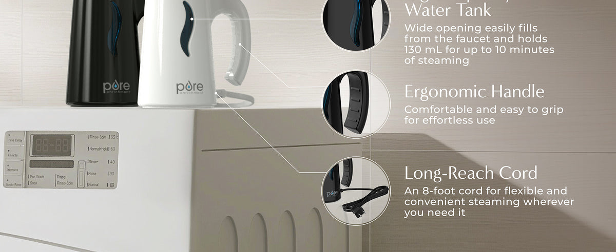 Remove wrinkles whenever and wherever with the PureSteam Portable Steamer from Pure Enrichment. This portable, travel-friendly steamer features a handheld design that delivers gentle steam to de-wrinkle your clothes in minutes. Perfect for at-home or on the go, its fast-heating technology ensures it’s ready in just 2 minutes. The ergonomic handle provides a comfortable, secure grip, making it easy to steam your clothes with continuous steam. The simple one-touch button makes it easy to turn on and off, while the auto shut-off function kicks in if the water runs low or the steamer gets too hot. This lightweight steamer is safe on all fabrics, including linen, cotton, silk, and denim, and can be used on clothing, curtains, furniture, linens, and more. Its compact size, weighing only 1 pound, makes it easy to pack for travel. The 130 mL easy-fill water tank provides up to 10 minutes of steaming, while the 8-foot long-reach cord offers flexibility to steam anywhere. This ETL-certified, safe, and effective travel steamer is your go-to solution for wrinkle-free clothes anytime, anywhere.