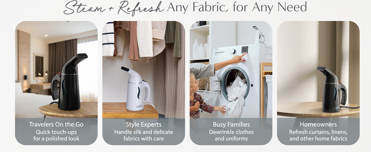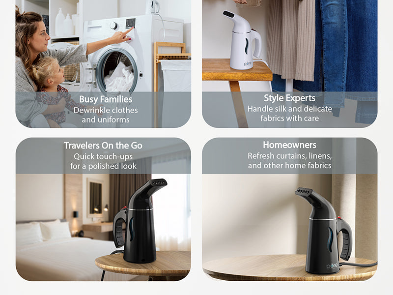 - Handheld Travel Steamer: Portable and packable, this compact and lightweight steamer is perfect for removing wrinkles in seconds at home or on the go. Refresh, soften, and remove wrinkles, spots, and odors on a wide range of fabrics, including clothing, delicates, bedding, curtains, upholstered furniture, and more. The gentle yet effective steam works on different types of fabric, such as silk, cotton, linen, and denim.